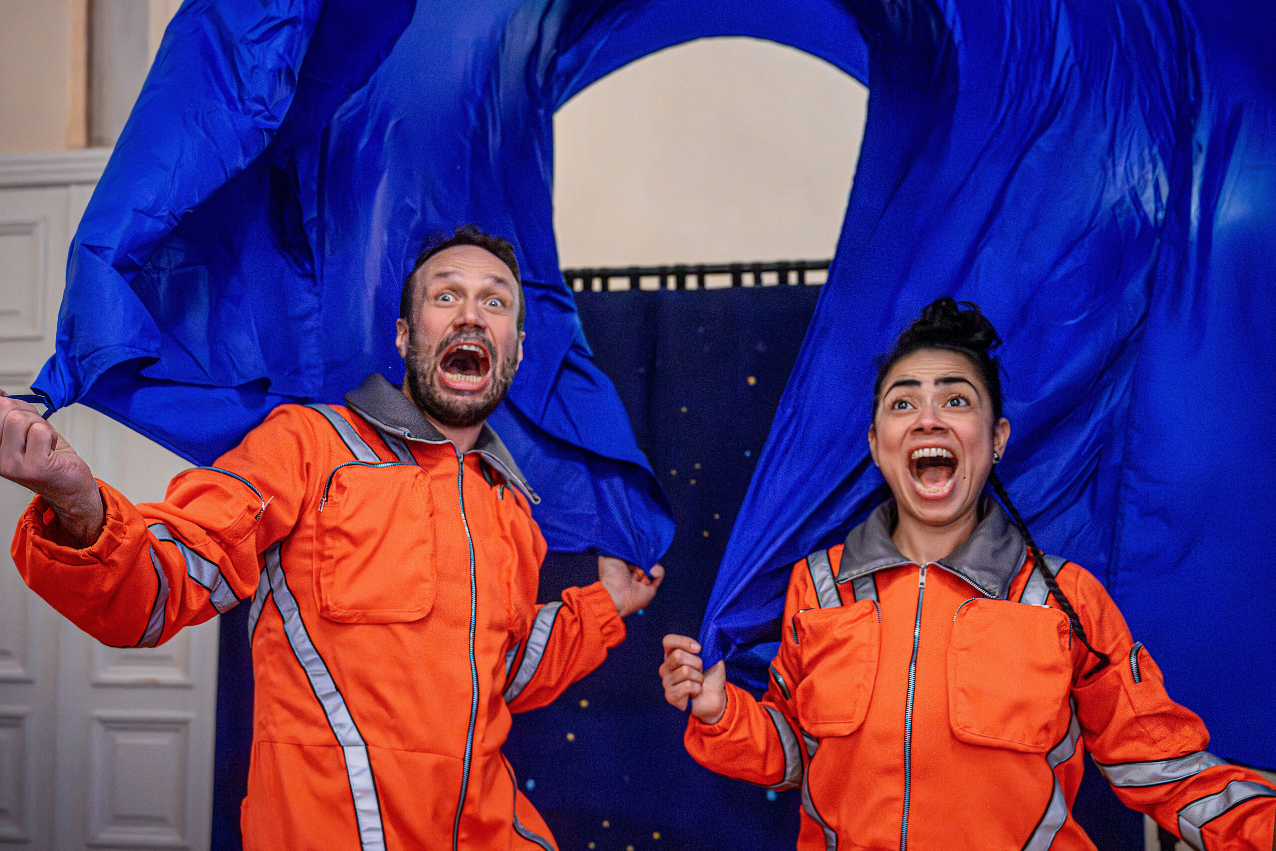 Piku (Stella Laine) ja Babo (Markus Riuttu). Ulkoavaruuden lapset / Barnen från yttre rymden / Unga Teatern / Photo by Cata Portin